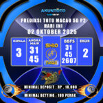 Prediksi Togel Jitu Pasaran TOTO MACAU P6 15 OKTOBER 2025 Sudah dipastikan angka yang kami berikan merupakan angka yang sudah dirumuskan dengan baik untuk para bettor pencari angka. Prediksi yang kami berikan sudah pasti sangat jitu, Sudah terbukti dari semua prediksi kami 70%-nya pasti JP. Banyak perhitungan dari berbagai angka yang kami berikan. Hasil pengeluaran […]